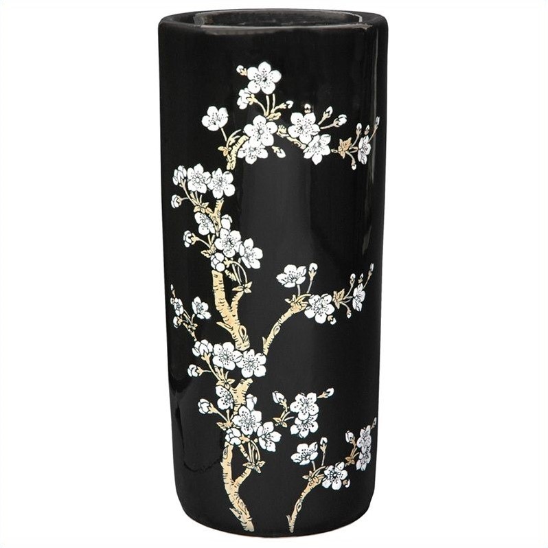 | Oriental 18"" Flower Blossom Umbrella Stand in Black and White |