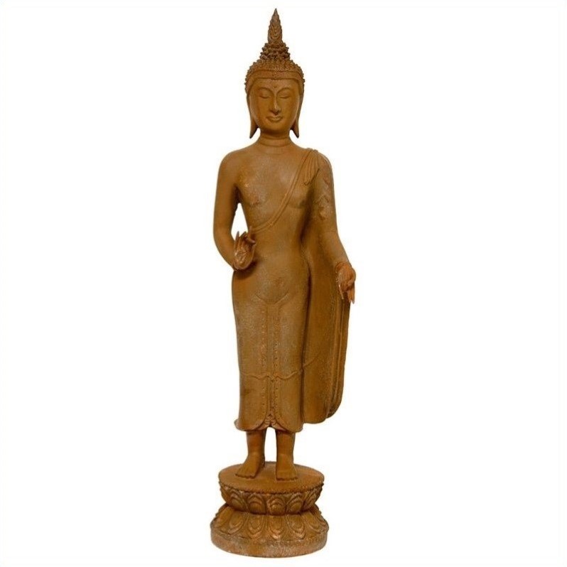 | Oriental 21"" Thai Standing Gebon Patina Buddha Statue in Rust |