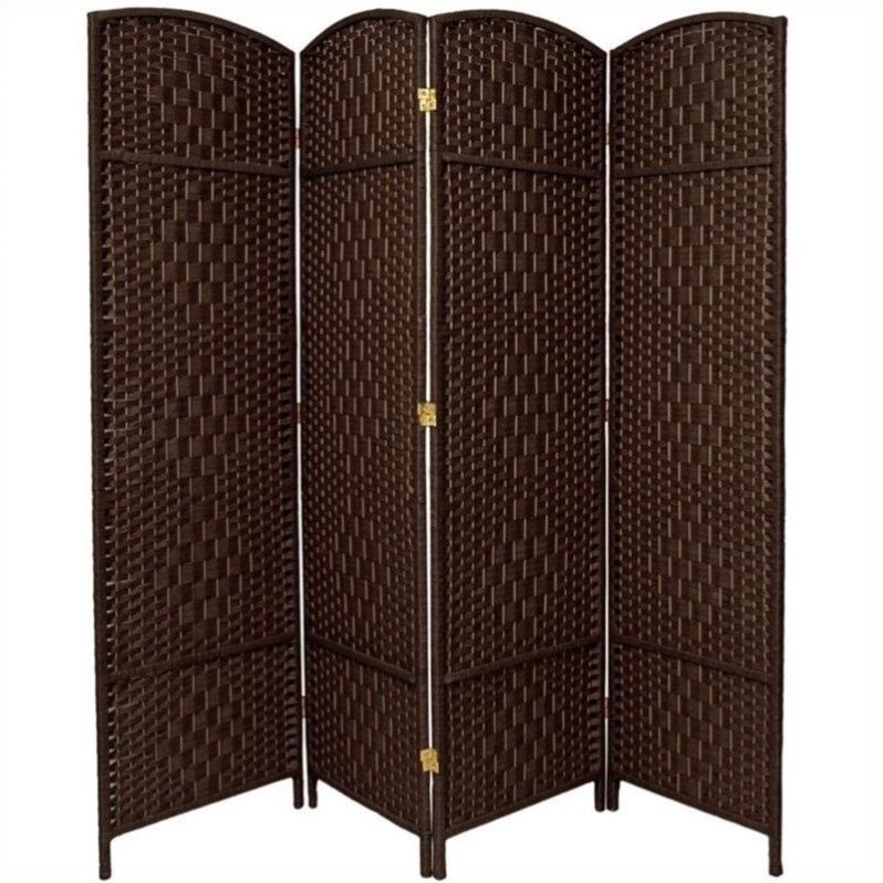 | Oriental 4 Panel Diamond Weave Fiber Room Divider in Dark Mocha |