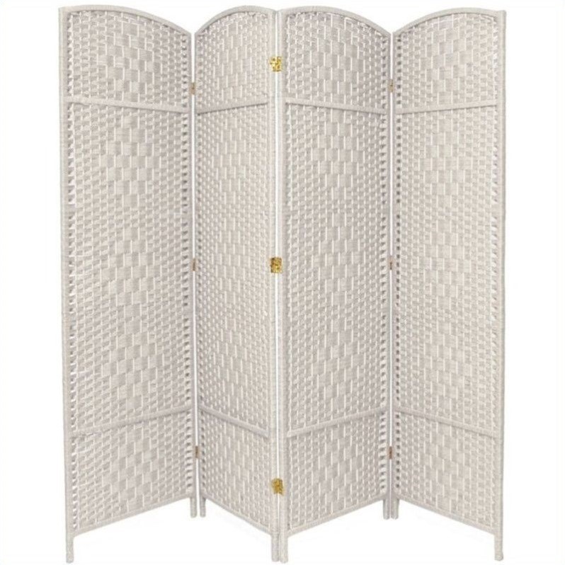 | Oriental 4 Panel Diamond Weave Fiber Room Divider in White |