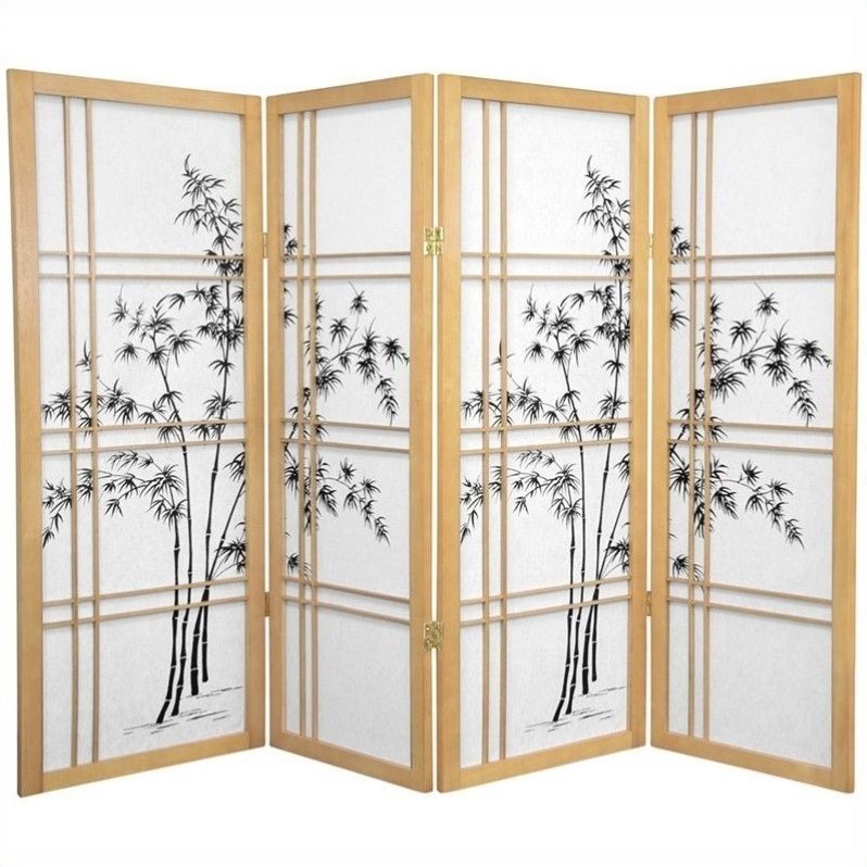 | Oriental 4 Panel Double Cross Bamboo Tree Shoji Screen in Natural |