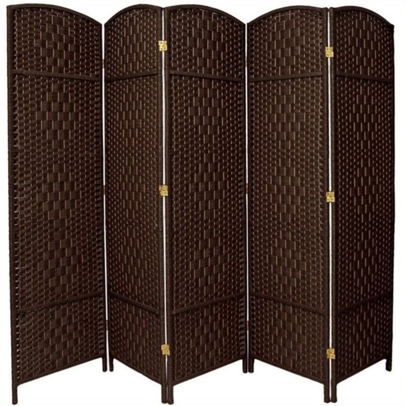 | Oriental 5 Panel Diamond Weave Fiber Room Divider in Dark Mocha |