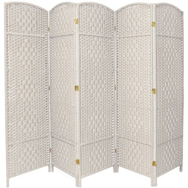 | Oriental 5 Panel Diamond Weave Fiber Room Divider in White |