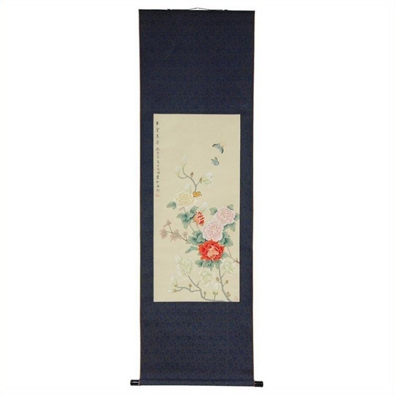 | Oriental Blossom and Butterflies Chinese Scroll Wall Decor in Blue |