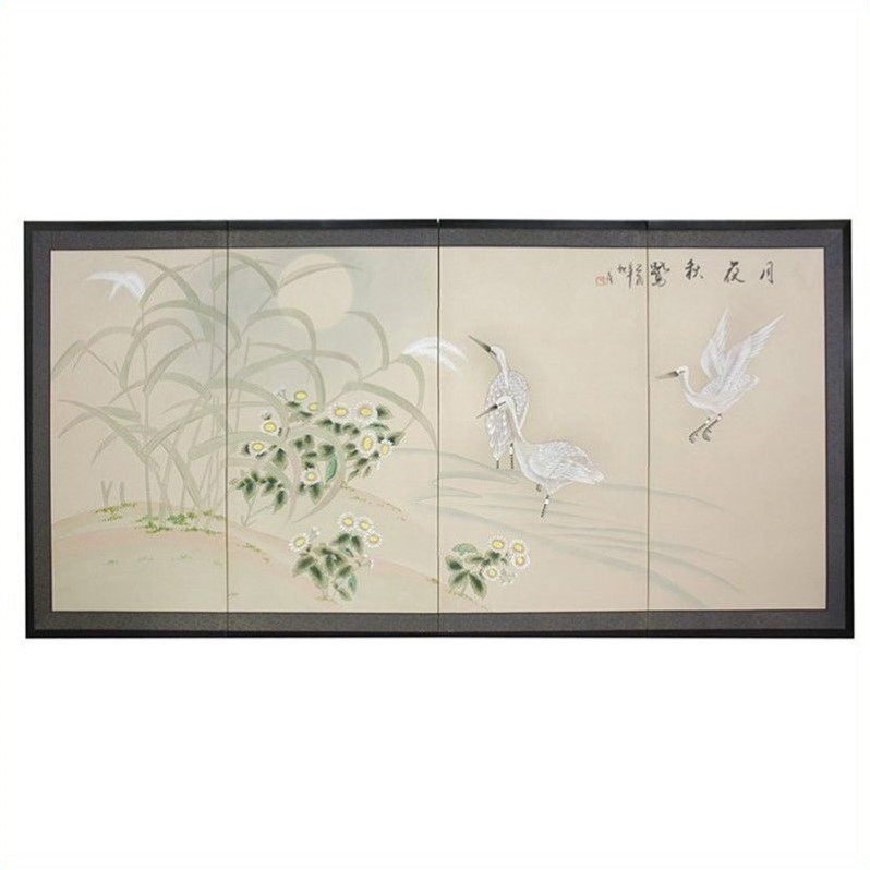 ![]() Oriental Furniture - Room Dividers - SILKCRMOON18x36 - The Cranes in Full Moon motif depicts beautiful cranes and marsh plants in a wetland at moonrise. Hand painted ink and watercolor silk screen. Song dynasty (10th century China) brush art style. Crafted from silk covered paper, glued over four side-by-side lacquered wood frames. Matted with a fine Chinese silk brocade border. Comes with lacquered brass geometric hangers for easy mounting. Subtle, beautiful hand painted wall art for a fraction of the cost of a comparable print. Choose from two sizes: 18""H x 36""W or 24""H x 48""W. Each screen measures 5/8"" deep.Finish: beige and tanMade of silk covered paper and lacquered woodSong dynasty (10th century china) brush art styleHand painted ink and watercolor silk screenMatted with chinese silk brocade borderLacquered brass geometric hangers for easy mountingSpecifications:Product Weight: 4lbsOverall Dimensions: 18"" H x 36"" W x 0.63"" D Price: 79.00 |