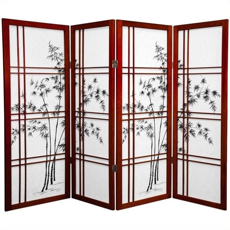 | Oriental Double Cross Bamboo Tree Shoji Screen in Rosewood |