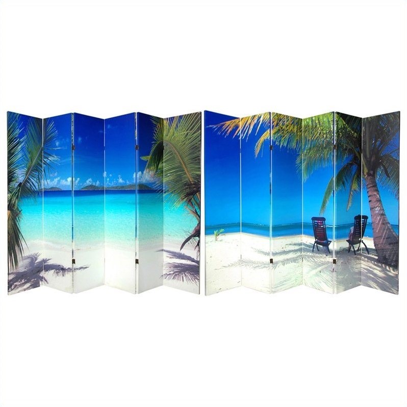 ![]() Oriental Furniture - Room Dividers - CANBEACH6P - Part of our expanded selection of six panel room dividers, crafted from durable art quality canvas stretched over strong kiln dried wood frames. On the front and back, beautiful color photos of stunning tropical beaches, printed directly onto the canvas panels. Comparatively light weight, sturdy, and affordable, beautiful and practical home decor accessories. Large 6 panel folding screen room divider. Durable art canvas stretched over mitered wood frames. Enlarged nature photographs of inviting tropical beaches. Browse our outstanding selection of nature photo printed floor screens .Finish: multicolorMade of reinforced wood of hardy and kiln dried sprucePrinted with high saturation inkPhotos of stunning tropical beachesCovered with stretched poly-cotton blend canvasEntirely opaqueVery tough and durable, yet light and portableSpecifications:Overall Dimensions: 71"" H x 96"" W x 1"" DProduct Weight: 16.5lbs Price: 239.00 |