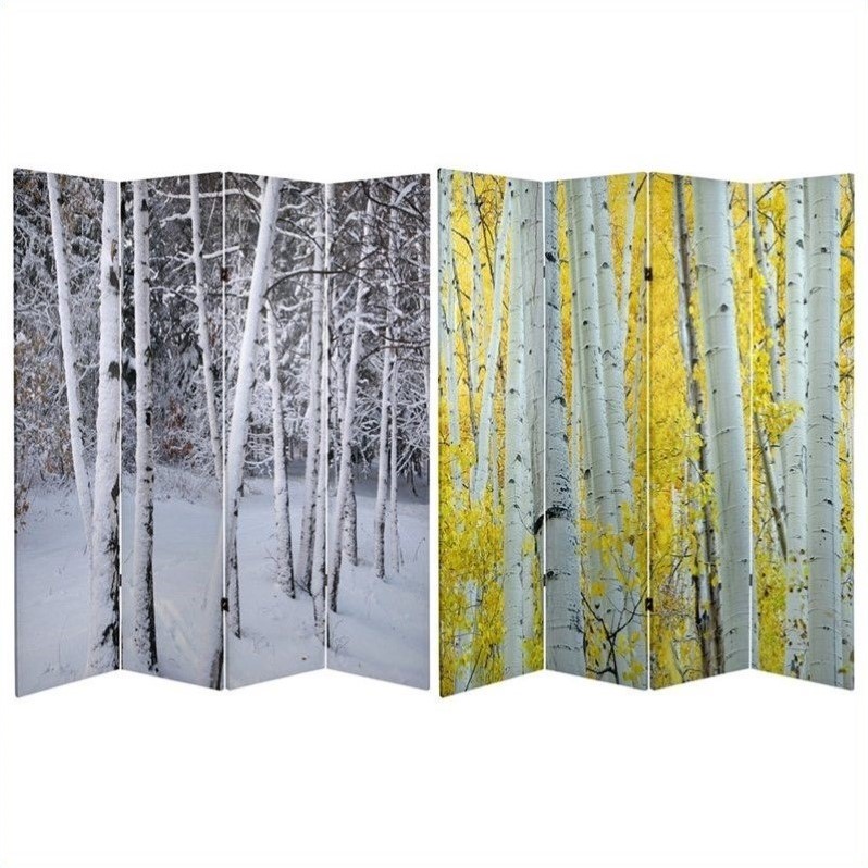 | Oriental Double Sided Birch Trees Room Divider in White and Yellow |