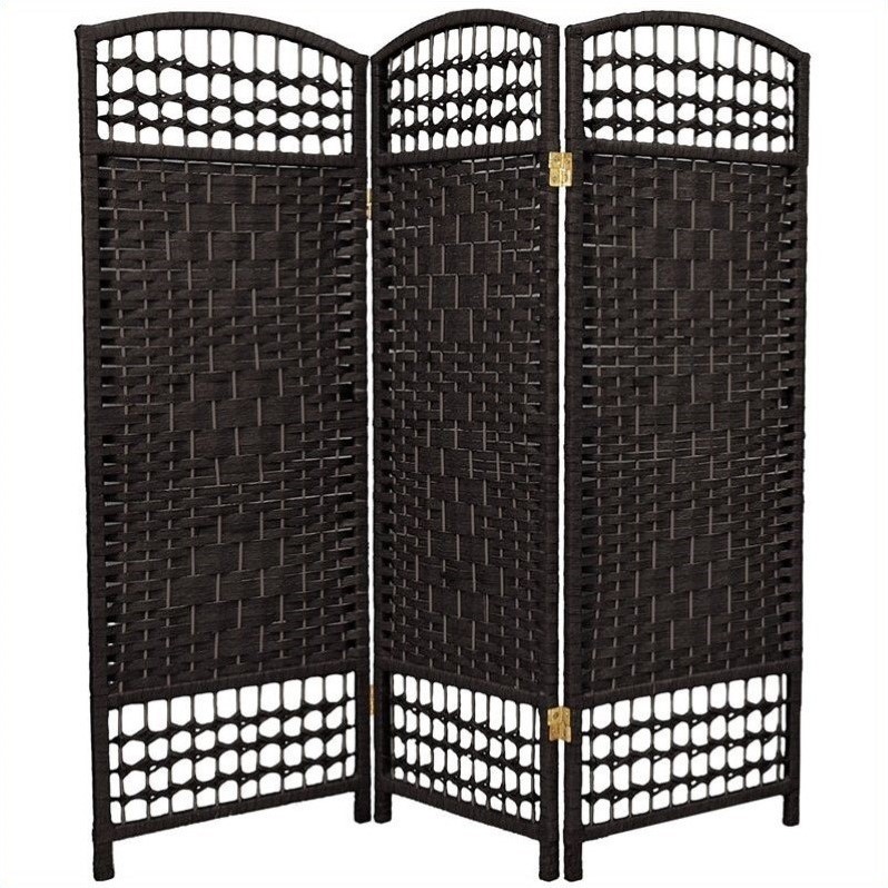 | Oriental Fiber Weave Room Divider with 3 Panel in Black |