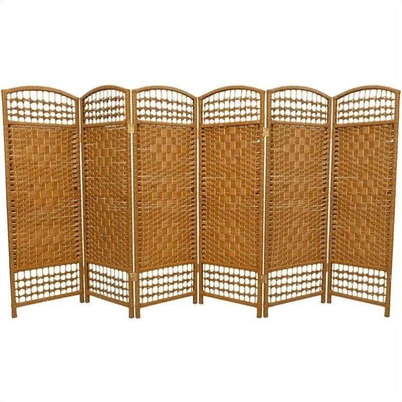 | Oriental Fiber Weave Room Divider with 6 Panel in Light Beige |