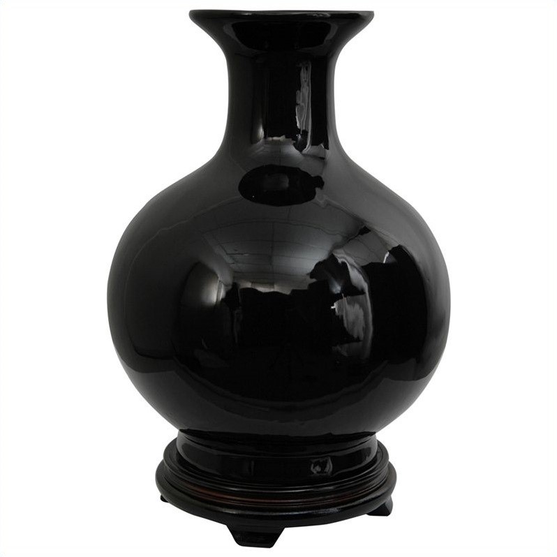 ![]() Oriental Furniture - Vases / Urns - BWVASE3BLK - NOTE: This vase was photographed with the stand shown for display purposes only; all stands are sold separately. If you would like to purchase a fitted stand for this vase, please select our 6.5"" size Rosewood Pedestal Stand , Rosewood Carved Stand or Rosewood Vase Stand . Distinctive ""wine bottle"" shaped vase in a high luster black monochrome finish. Bold, simple design is suited to modern American and minimalist decor. Display alone or in matched pairs, empty, or decorated with fresh flowers or lucky bamboo shoots. Round vase made of high temperature fired porcelain ceramic. Bold black onyx glaze. Browse our entire selection of Asian porcelain vases on the web.Finish: blackMade of high temperature fired porcelain ceramicRound shapedBold black onyx glazeLuster monochromeSpecifications:Overall Dimensions: 12"" H x 9.5"" W x 9.5"" DProduct Weight: 4lbs Price: 69.00 |