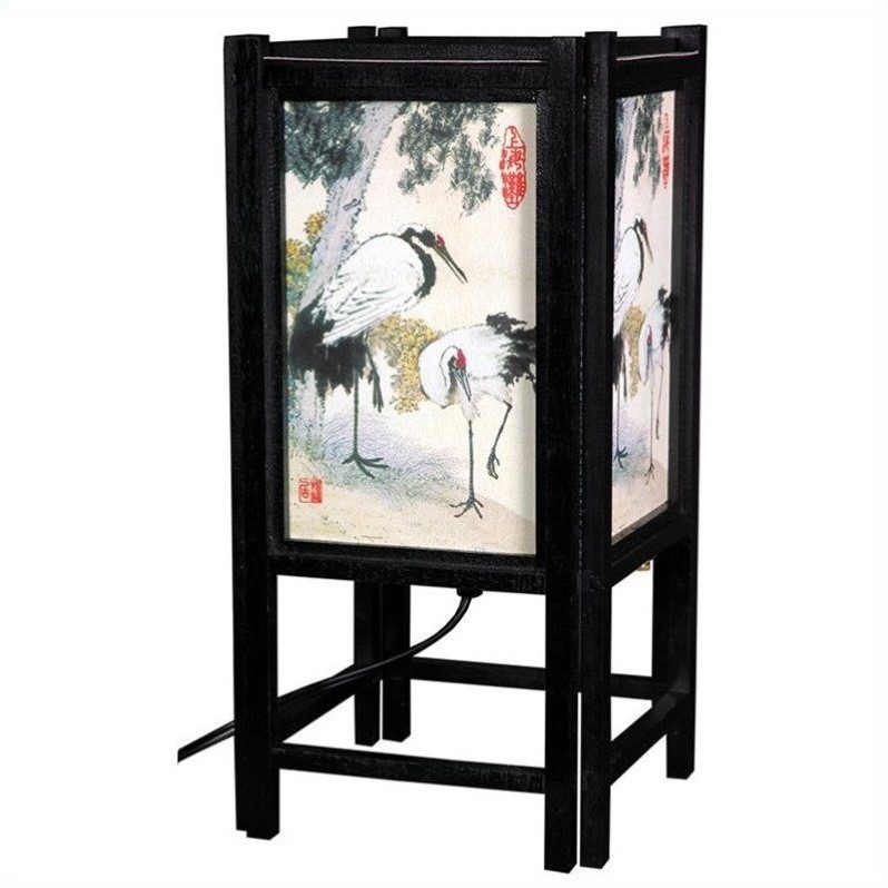 | Oriental Furniture 14"" Art Shoji Lamp with Bird in Black |