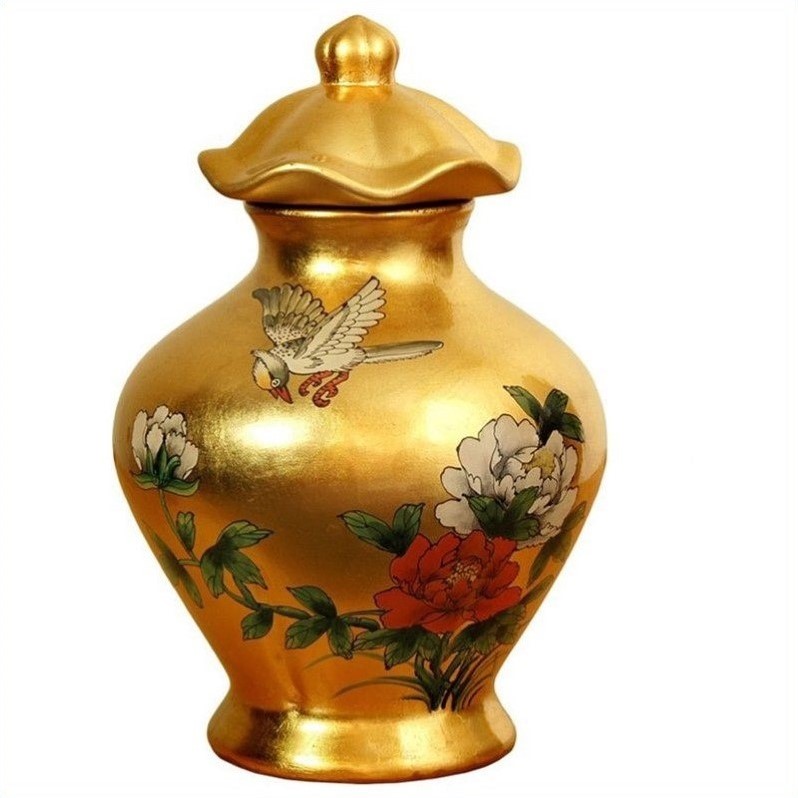 | Oriental Furniture 14"" Temple Jar in Gold |