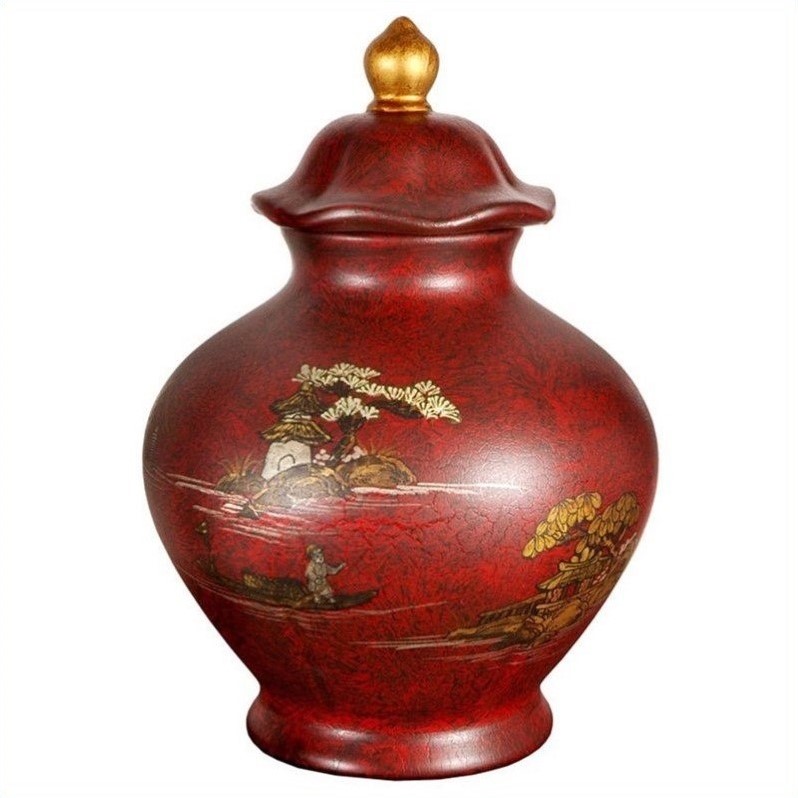 ![]() Oriental Furniture - Jars / Canisters - PORTJVRC - This delicately crafted porcelain vase demonstrates a simple elegance in form, and features a hand-painted Japanese landscape. Handcrafted by a family of artisans in the Guangdong province of mainland China for over three generations. The longevity of this family's craft, despite dramatic social and economic reform, is a true testament of their craftsmanship. Porcelain is hand-finished with seven coats of rich, clear lacquer.Finish: redMade of porcelainHand-painted landscape scene7 coats rich lacquer finishHand-craftedSpecifications:Product Weight: 8lbsOverall Dimensions: 14"" H x 9"" W x 9"" D Price: 69.00 |