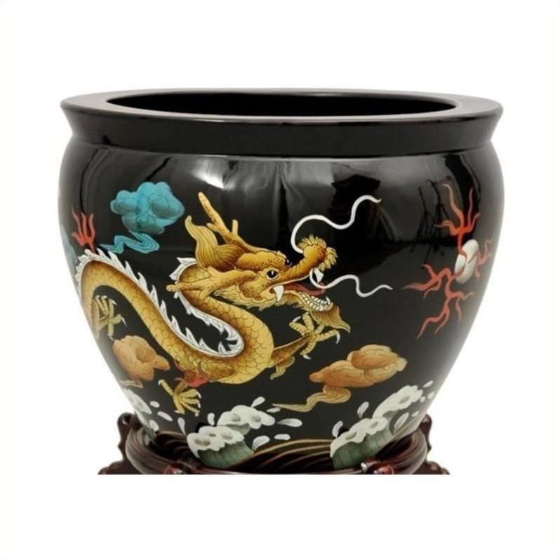 | Oriental Furniture 16"" Black Dragons Fishbowl |