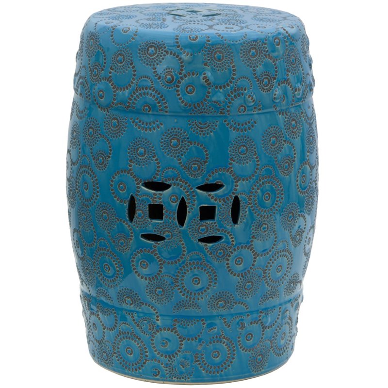 ![]() Oriental Furniture - Garden Stools - BWGARDEN12 - Handcrafted in high-quality porcelain, this fetching garden stool offers a stylish modern twist on a traditional Chinese design. The subtly layered glaze features a range of hues from aquamarine to cobalt stamped with spherical swirls and stars, creating the effect of a beautiful sky illuminated by twinkling starlight. Open on the bottom and featuring cut-through medallion designs on the top, front, and back, this weather-resistant garden stool can withstand the rain if placed in your garden or porch. This lovely accent piece is the perfect way to bring out the colors in your home or office. Finish: Blue FireworkMaterial: PorcelainTwinkling firework images stamped onto glazed porcelainMedium-gloss glaze features rich blue huesDesigned for indoor and outdoor useStylish accent piece, end table, seat, or plant standSpecifications:Overall Product Dimensions: 18"" H x 13"" W x 13"" DProduct Weight: 18 lbs Price: 139.00 |