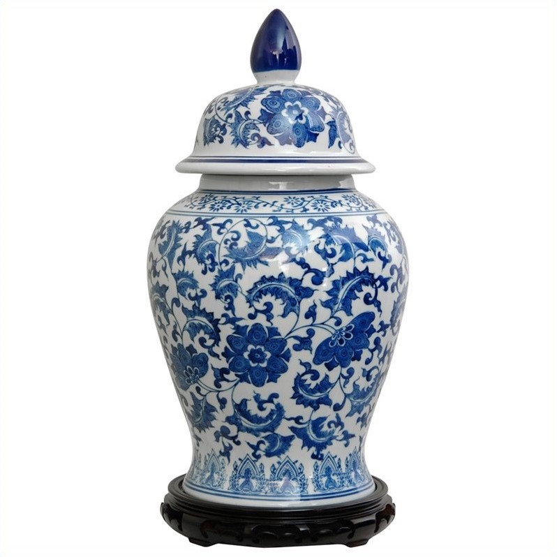| Oriental Furniture 18"" Floral Temple Jar in Blue and White |