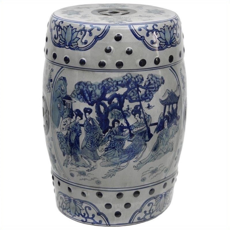 | Oriental Furniture 18"" Garden Stool in Blue and White |