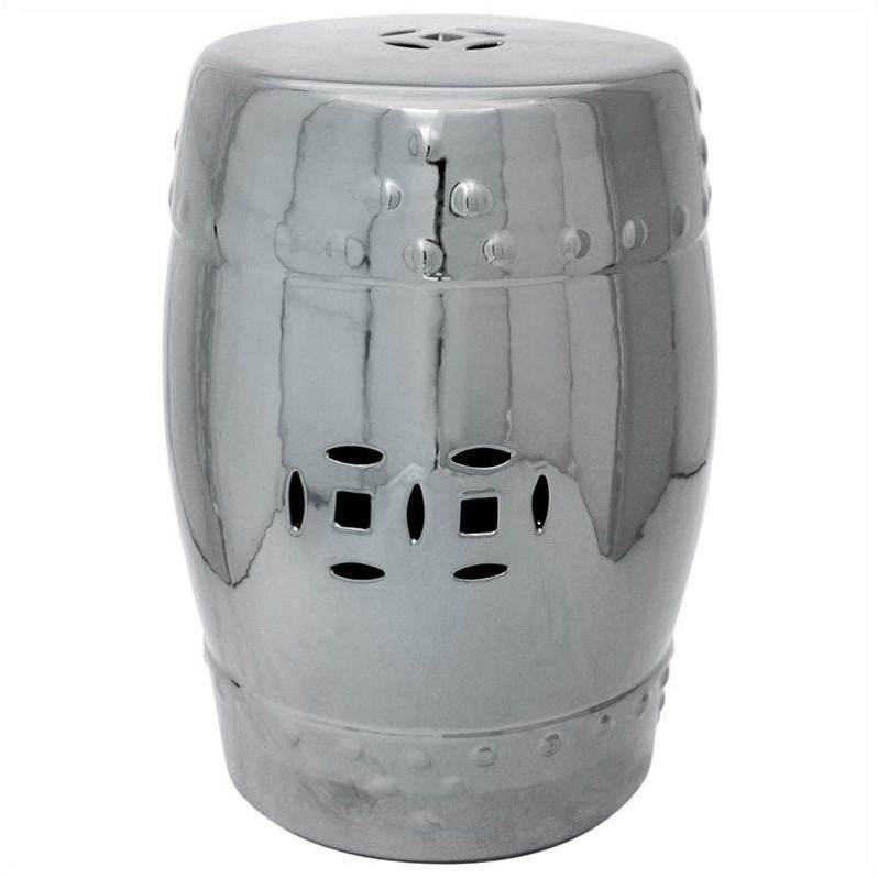 | Oriental Furniture 18"" Round Garden Stool in Silver |