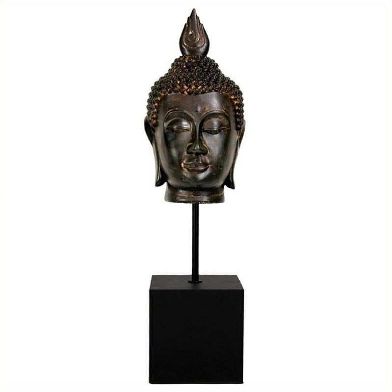 | Oriental Furniture 19"" Burmese Buddha Head Statue in Antique Bronze |