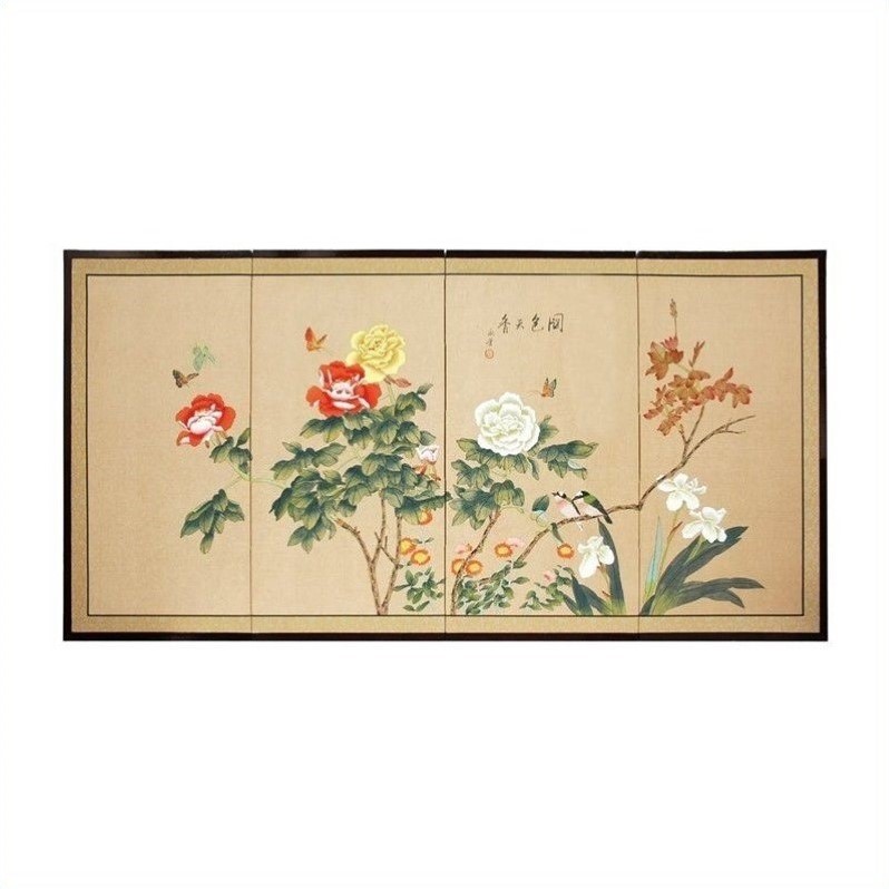 ![]() Oriental Furniture - Room Dividers - SILKBUG24x48 - The Butterflies in the Garden is an extraordinary painting, with large colorful blooms beneath fluttering butterflies. Large (3ft. x 6ft.), hand painted ink and watercolor silk screen. Song dynasty (10th century China) brush art style. Crafted from silk covered paper, glued over four side-by-side lacquered wood frames. Matted with a fine Chinese silk brocade border. Comes with lacquered brass geometric hangers for easy mounting. Can be displayed as a privacy screen, partly folded to stand upright on a table or floor. Note that no two renderings are exactly the same. Subtle, beautiful hand painted wall art for a fraction of the cost of a comparable print. Choose from three sizes, 36""H x 72""W; 24""H x 48""W; and 18""H x 36""W. Each screen measures 5/8"" deep.Easily divides room to maximize spaceSwiftly allows the look and layout of your home to be changedServes as a room divider or a decorative pieceSpecifications:Overall Product Dimensions: 48"" H""x24"" W""x0.63"" DOverall Product Weight: 8lbs Price: 99.00 |