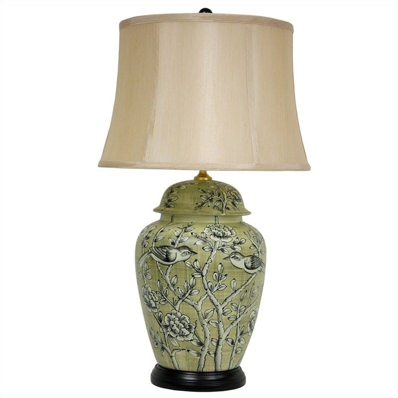 | Oriental Furniture 25"" Birds and Flowers Lamp in Green |