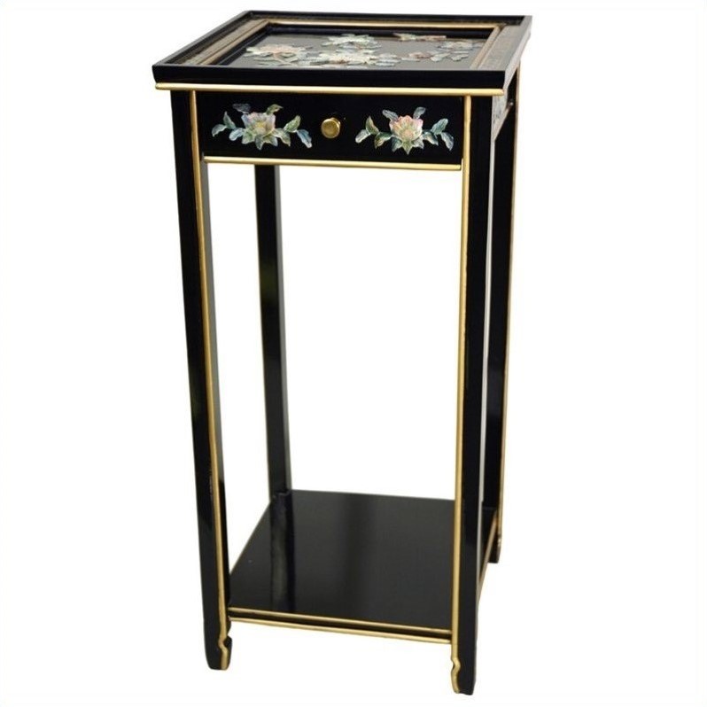 ![]() Oriental Furniture - Pedestal Table - LCQ210BBF - Hand-crafted by artisans in the Guangdong province of mainland China and inspired by Chinese craftsmanship of the 18th Century. This 29 inch lacquer pedestal features a single drawer and a convenient bottom shelf. Hand-finished in a rich, clear lacquer. Use this stand to display your favorite plant, or simply adorn it with a charming piece of decor. Available in Black or Red Lacquer featuring a Japanese landscape design; or Gold Lacquer featuring a birds and flower motif; or Black appliqued with mother-of-pearl Ladies design, or Black lacquer with a mother-of-pearl birds and flowers design.Finish: blackIncludes single drawer and bottom shelfMade of elm woodLacquer with mother of pearl birds and flowersHand-finished in rich and clear lacquerHand-craftedSpecifications:Overall Dimensions: 29"" H x 14"" W x 14"" DOverall Weight: 21 lbs Price: 209.00 |
