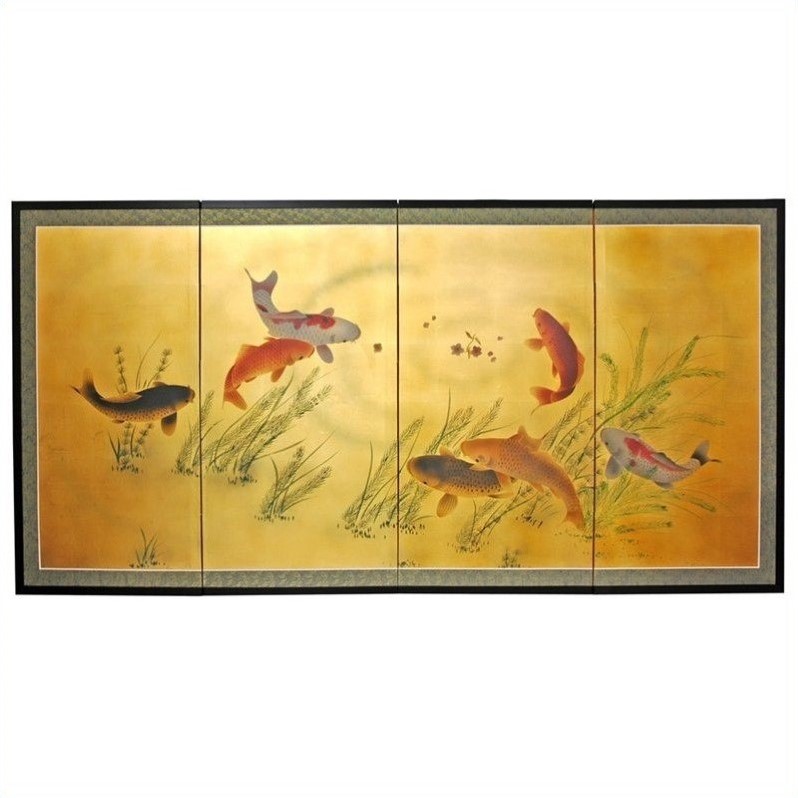 ![]() Oriental Furniture - Room Dividers - SILK7FISH - Evoke images of the Orient with this soft and beautiful, hand-painted gold leaf rendition of seven lucky fish. Large (3ft. x 6ft.), hand painted gold leaf silk screen. Song dynasty (10th century China) brush art style. Crafted from silk covered paper, glued over four side-by-side lacquered wood frames. Matted with a fine Chinese silk brocade border. Comes with lacquered brass geometric hangers for easy mounting. Can be displayed as a privacy screen, partly folded to stand upright on a table or floor. Note that no two renderings are exactly the same. Subtle, beautiful hand painted wall art for a fraction of the cost of a comparable print.Finish: goldMade of silk covered paper and lacquered woodSong dynasty (10th century china) brush art styleHand painted seven lucky fish wall artMatted with a fine chinese silk brocade borderLacquered brass geometric hangers for easy mountingSpecifications:Product Weight: 11.5lbsOverall Dimensions: 36"" H x 72"" W x 0.63"" D Price: 209.00 |
