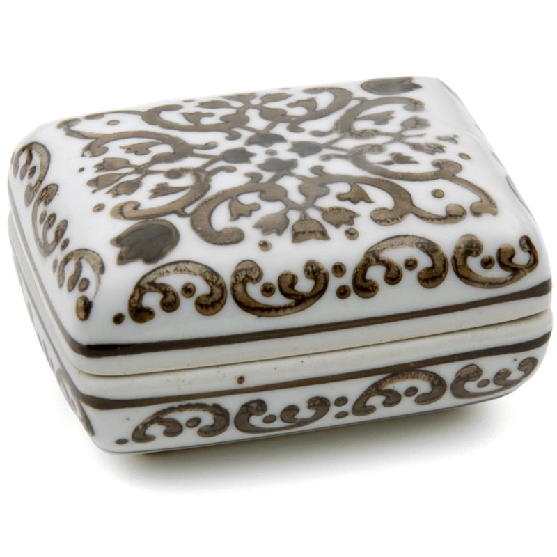 | Oriental Furniture 3.5"" Porcelain Small Jewelry Box in Brown and White |