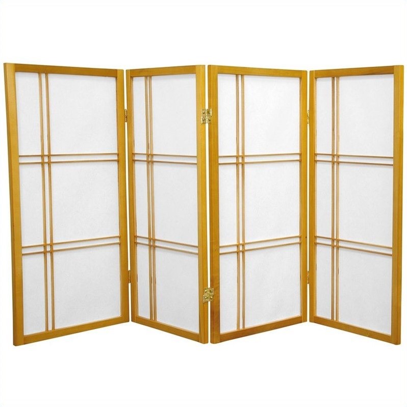 | Oriental Furniture 3' Tall Double Cross 4 Panels Shoji Screen in Honey |