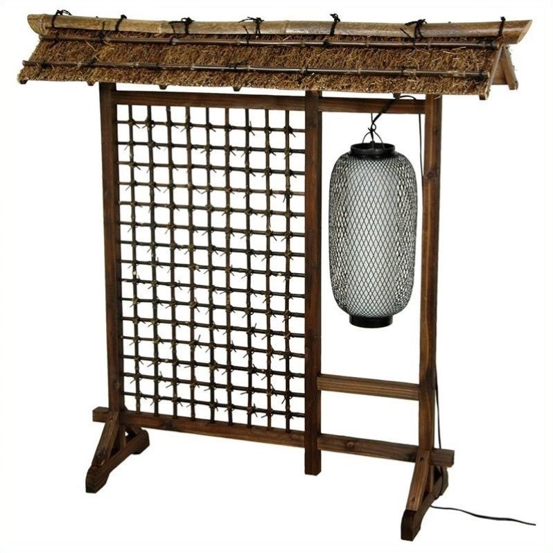 ![]() Oriental Furniture - Room Dividers - WDLW5 - Four foot tall Oriental room divider with multiple decorative components. Open lattice features fiber ties at each joint. Hanging black electric lantern is wired for American lightbulbs and plugs into a standard American outlet. Rustic thatched roof of natural fiber has bamboo poles stained a dark walnut. Footed triangular feet add stability and style. A bold, practical Oriental light and divider for the home or office.Finish: dark naturalThatched roof with dark walnut bamboo lateral beamsDark walnut trellis has decorative fiber tiesDurable wood frame has extra wide feet for added supportUL approvedSpecifications:Product Weight: 17lbsOverall Dimensions: 48"" H x 51"" W x 14"" D Price: 606.99 |