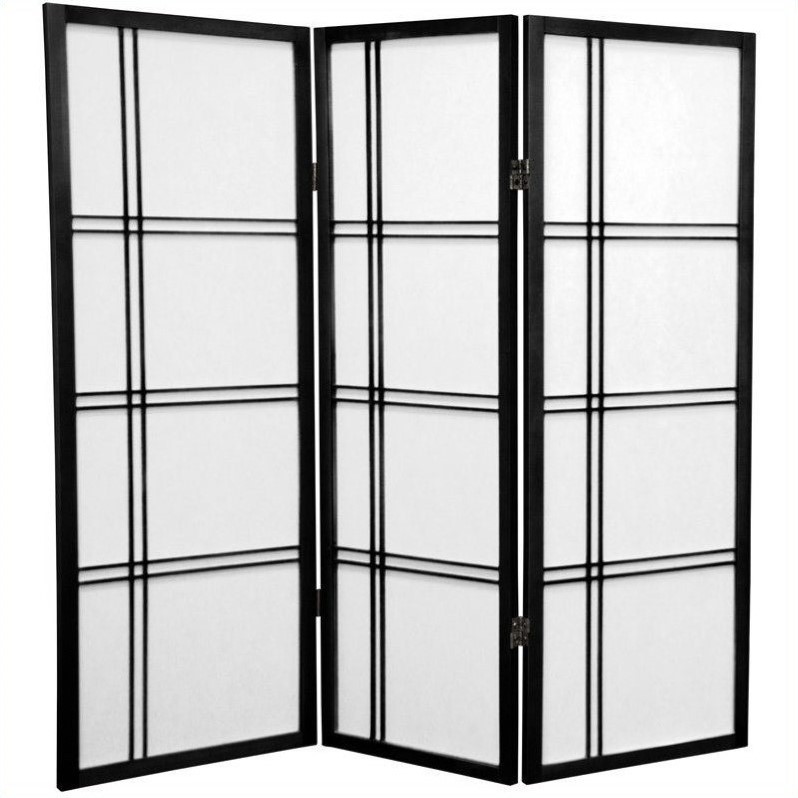 | Oriental Furniture 4' Tall Shoji Screen with 3 Panel in Black |