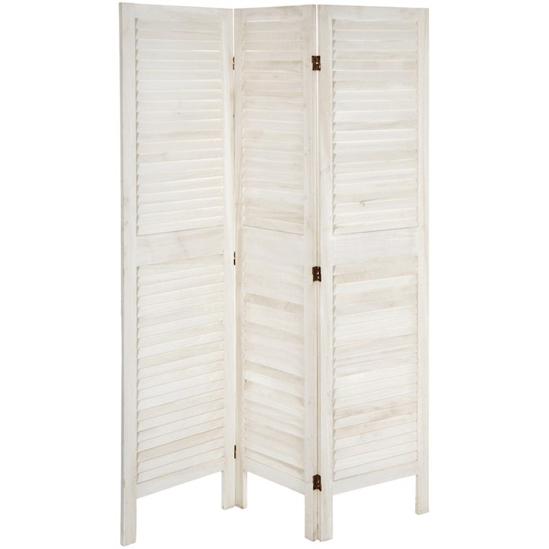 ![]() Oriental Furniture - Room Dividers - FJVEN23PWHT - This traditional louvered room divider is a true classic that fits with any style of modern decor. Sturdy, durable, and stable, this wooden screen features elegant louvered slats for a refined, airy look. The finish has been hand-distressed for a well-loved ""antique"" appearance. Finish: WhiteMaterial: WoodRobust wooden constructionBreezy louvered slats provide privacyDoubled-hinged panels fold in either directionHand-distressed for antiqued appearanceSpecifications:Overall Product Dimensions: 67"" H x 49.5"" W x 0.88"" DProduct Weight: 15 lbs Price: 169.00 |