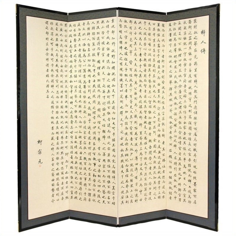 | Oriental Furniture 6 ' Tall Chinese Poem Room Divider in Beige and Tan |