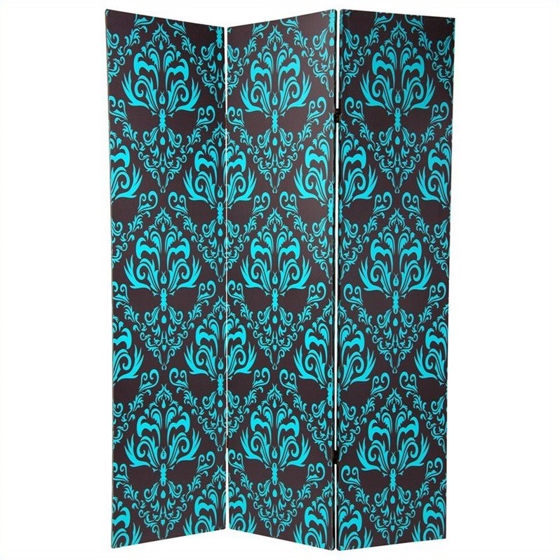 | Oriental Furniture 6' Tall Damask Room Divider in Blue and Black |