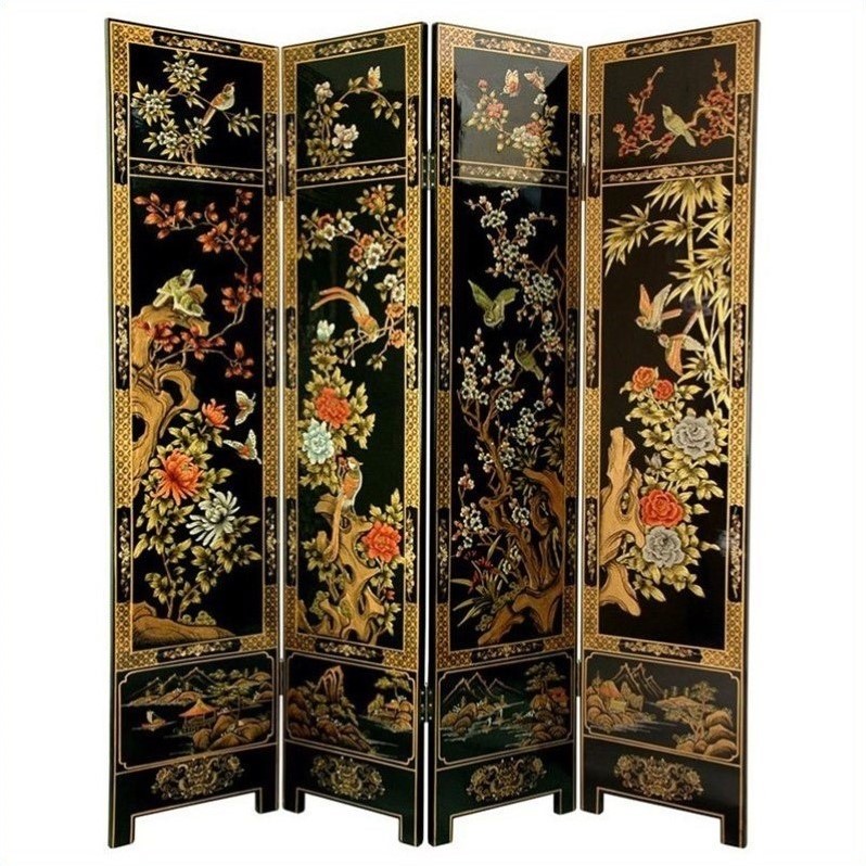 | Oriental Furniture 6' Tall Four Seasons Flowers Screen in Black |