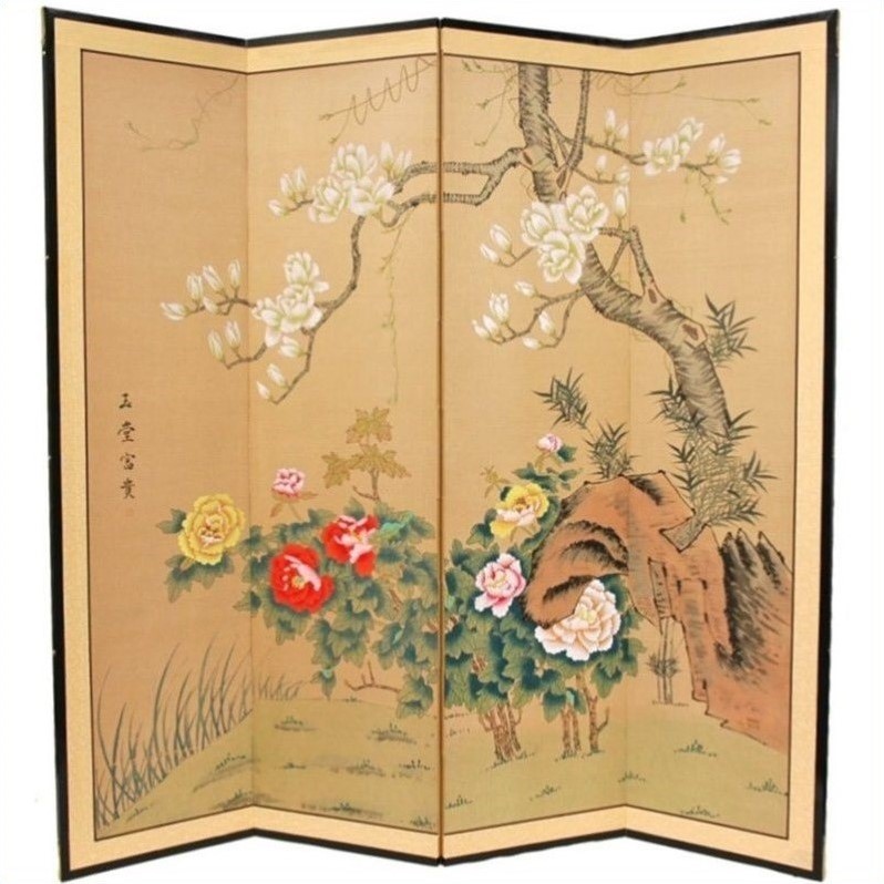 ![]() Oriental Furniture - Room Dividers - SILKHARMONY72x72 - The Harmony in Nature motif is lovely, with a fruit tree in white blossom, and bright flowers around the base. Song dynasty (10th century China) brush art style. Crafted from silk covered paper, glued over four side-by-side lacquered wood frames. Matted with a fine Chinese silk brocade border. Comes with lacquered brass geometric hangers for easy mounting. Can be displayed as a privacy screen, partly folded to stand upright on a table or floor. Note that no two renderings are exactly the same. Subtle, beautiful hand painted wall art for a fraction of the cost of a comparable print. Choose from three sizes, 72""H x 72""W; 24""H x 48""W; 18""H x 36""W. Each screen measures 5/8"" deep.Easily divides room to maximize spaceSwiftly allows the look and layout of your home to be changedServes as a room divider or a decorative pieceSpecifications:Overall Product Dimensions: 72"" H""x72"" W""x1"" DOverall Product Weight: 19lbs Price: 289.00 |
