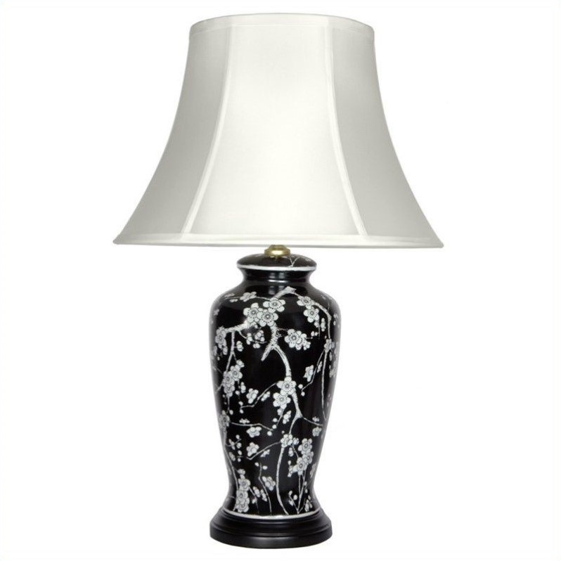 | Oriental Furniture Blossoms Lamp in Black and White |