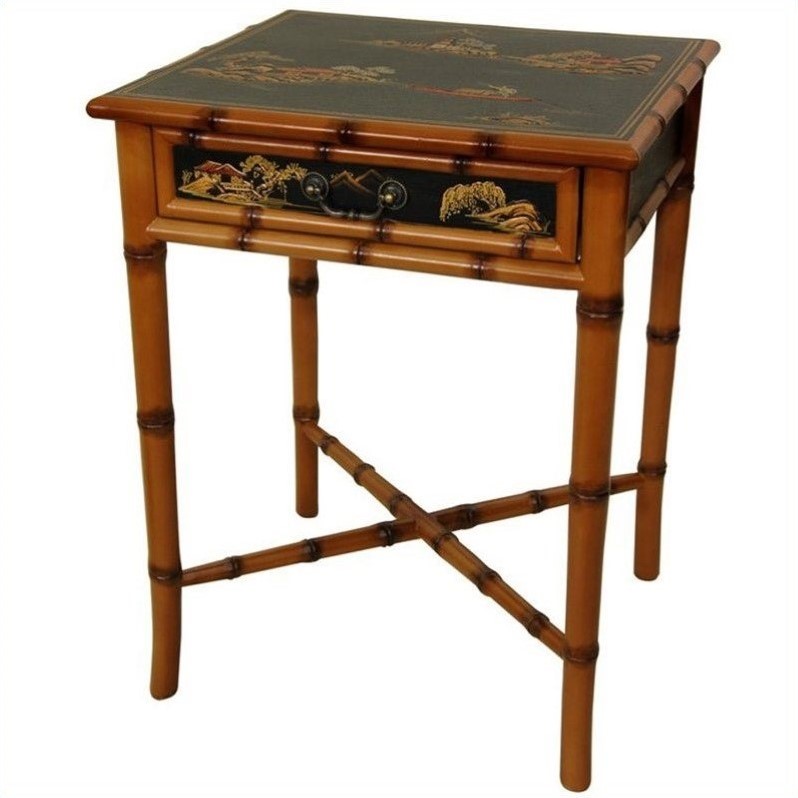 ![]() Oriental Furniture - End Tables - LCQY1098 - An elegant end table or nightstand, with a lovely combination of colors and textures. The light Maple color trim is hand carved into the shape of bamboo pole, beautifully accenting the fine, medium gloss black lacquer panels. High quality, beautifully crafted Ching dynasty design end table. Hand carved faux bamboo style solid trim edges. Refined, fine quality medium gloss hard black lacquer surfaces. Lovely hand painted gold riverside landscape art motif. Ideal design end table or nightstand, drink or lamp table. From a stunning collection of matching furniture, decor, and wall art. Drawer measures 14.5""W x 13""D x 2.25""D Adding a touch of Far Eastern serenity and charm to a modern, eclectic interior makes perfect sense. Let this beautiful and unique lamp table brighten your interior decor; we think you will find our Ching design end tables to be a great choice; exceptional quality at an affordable price.Finish: blackChing dynasty designHand carved faux bamboo styleSolid trim edgesHand painted riverside landscapes on all sidesMedium gloss hard lacquer surfacesSpecifications:Overall Dimensions: 26"" H x 20"" W x 18"" DDrawer Dimension: 2.25"" H x 14.5"" W x 13"" DProduct Weight: 18lbs Price: 419.00 |