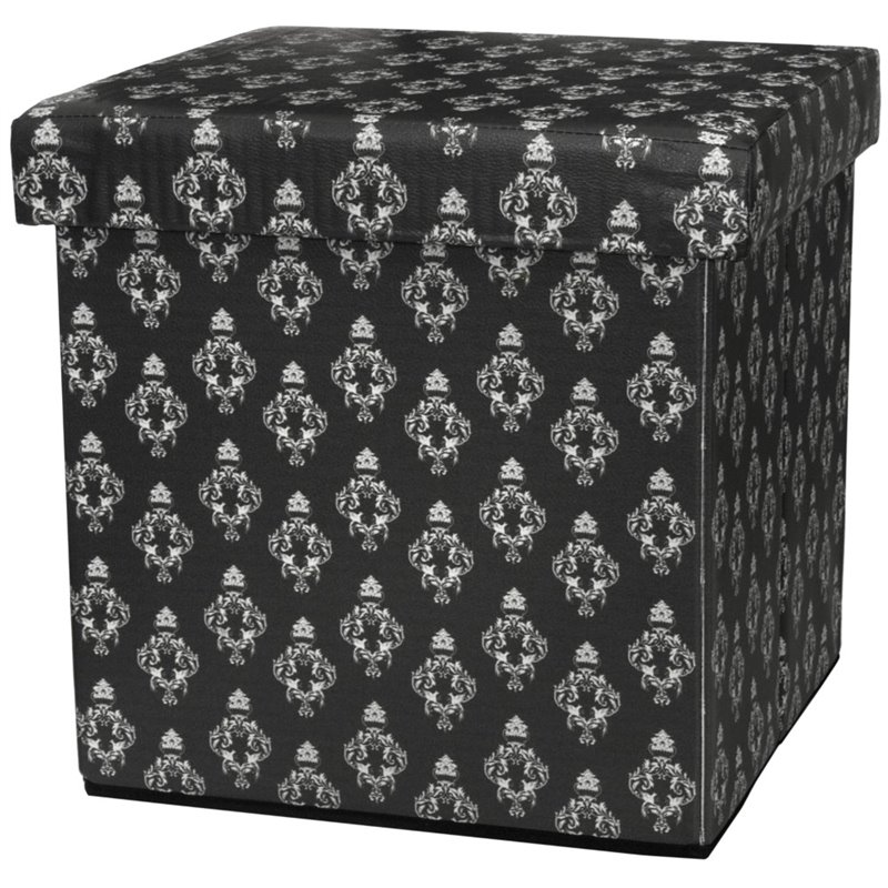| Oriental Furniture Damask Storage Ottoman in Black |
