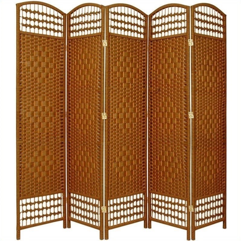 | Oriental Furniture Five Panel Fiber Weave Room Divider in Dark Beige |