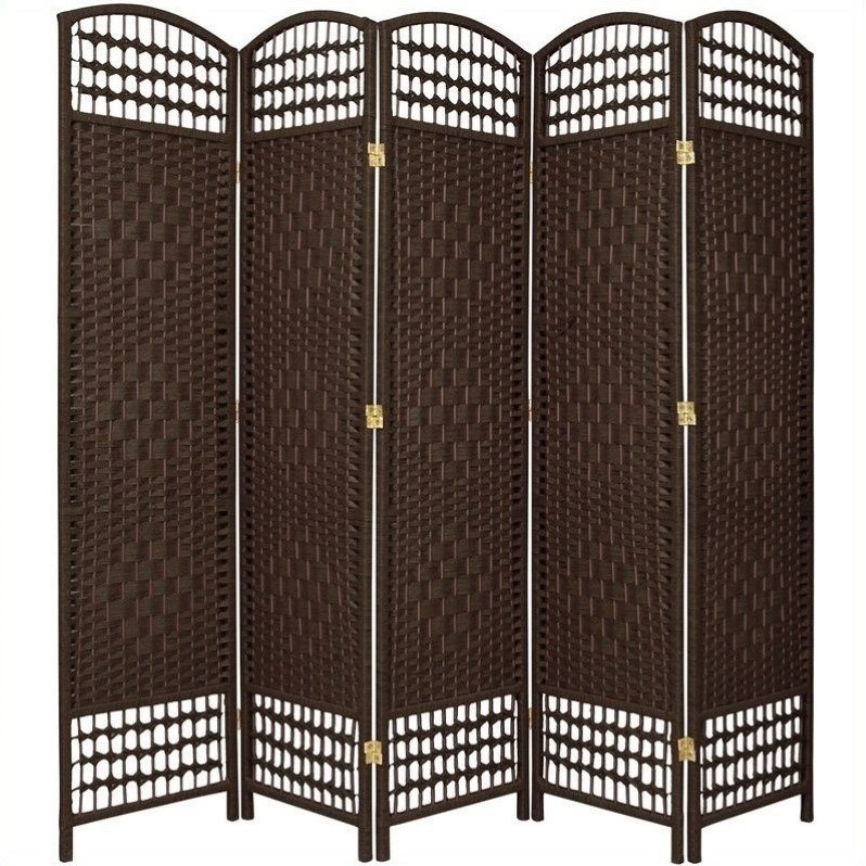 | Oriental Furniture Five Panel Fiber Weave Room Divider in Dark Mocha |