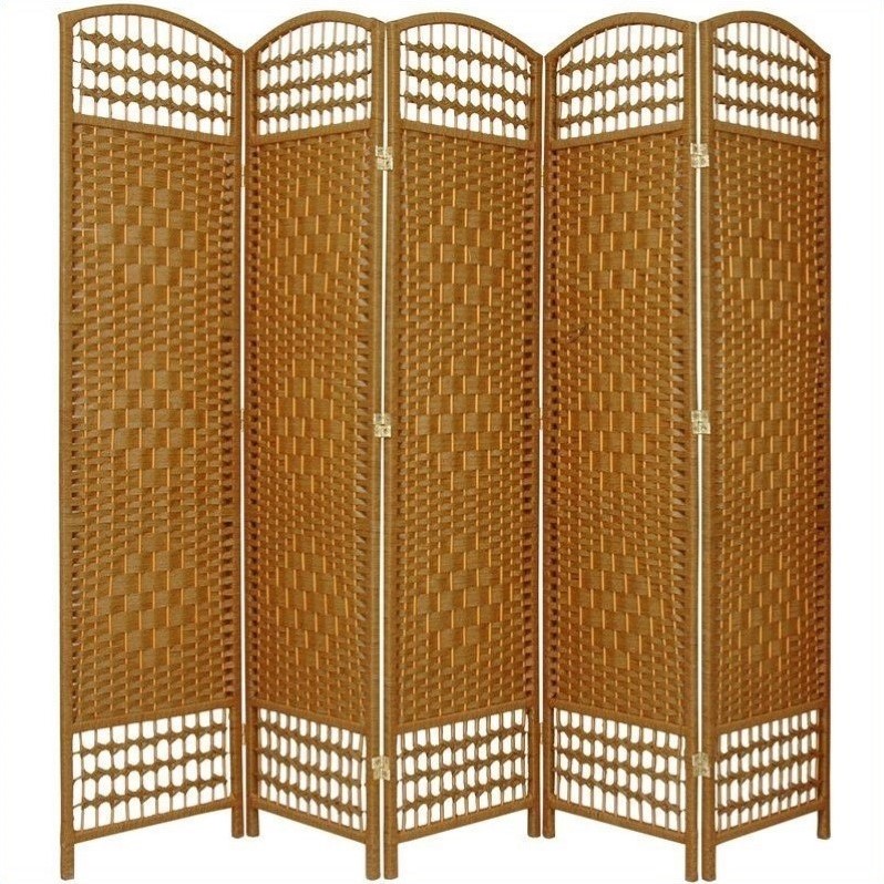 | Oriental Furniture Five Panel Fiber Weave Room Divider in Light Beige |