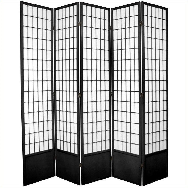 | Oriental Furniture Five Panel Window Pane Shoji Screen in Black |