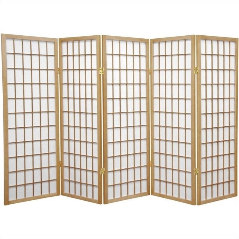 | Oriental Furniture Five Panel Window Pane Shoji Screen in Natural |