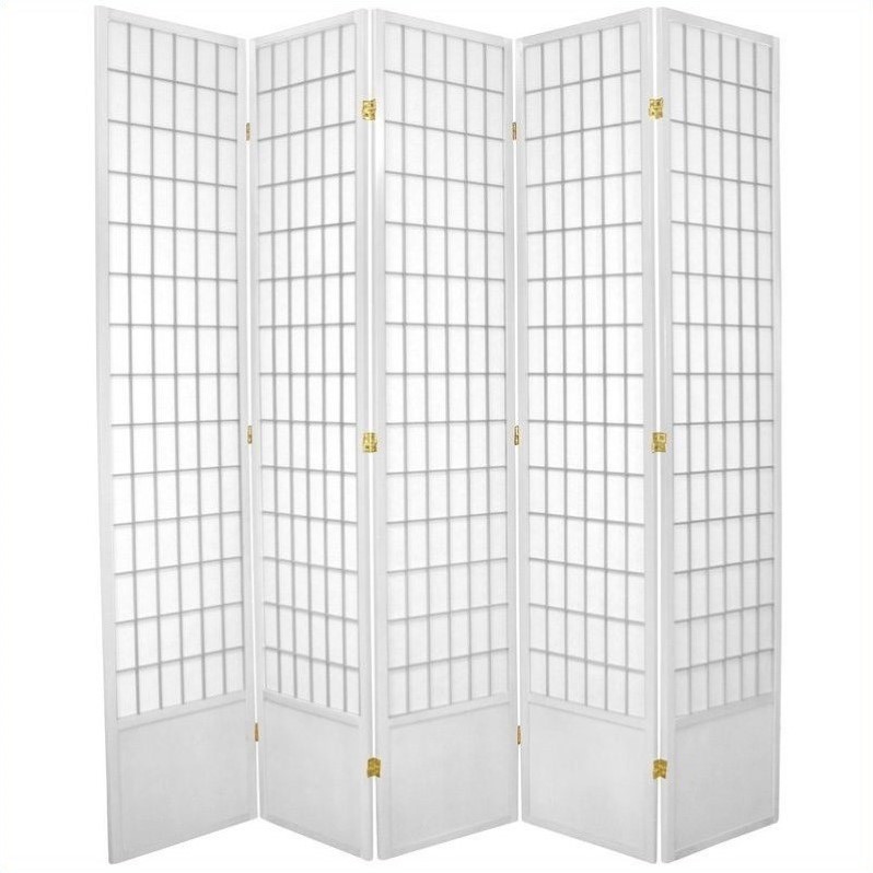 | Oriental Furniture Five Panel Window Pane Shoji Screen in White |