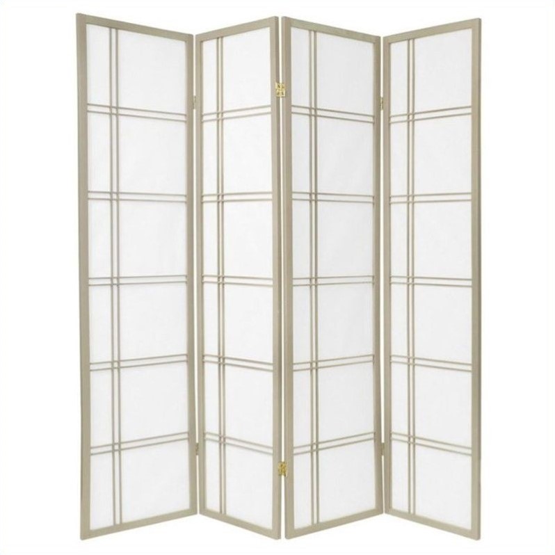 | Oriental Furniture Four Panel Double Cross Shoji Screen in Grey |