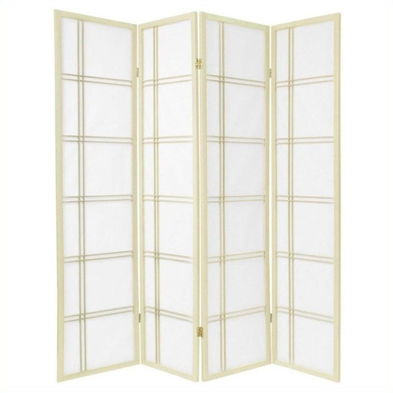 | Oriental Furniture Four Panel Double Cross Shoji Screen in Ivory |