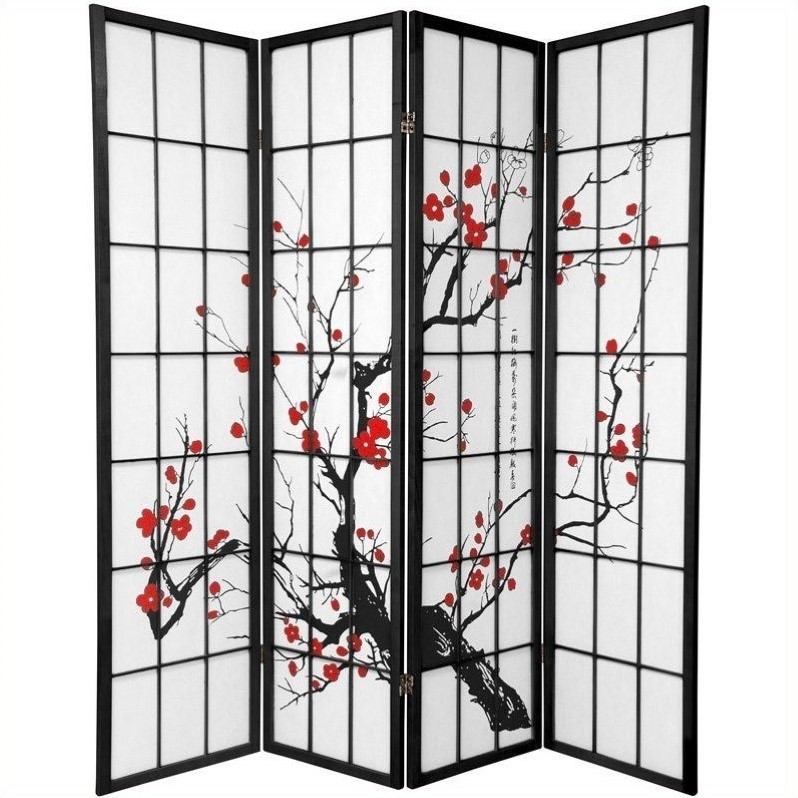 | Oriental Furniture Four Panel Flower Blossom Room Divider in Black |