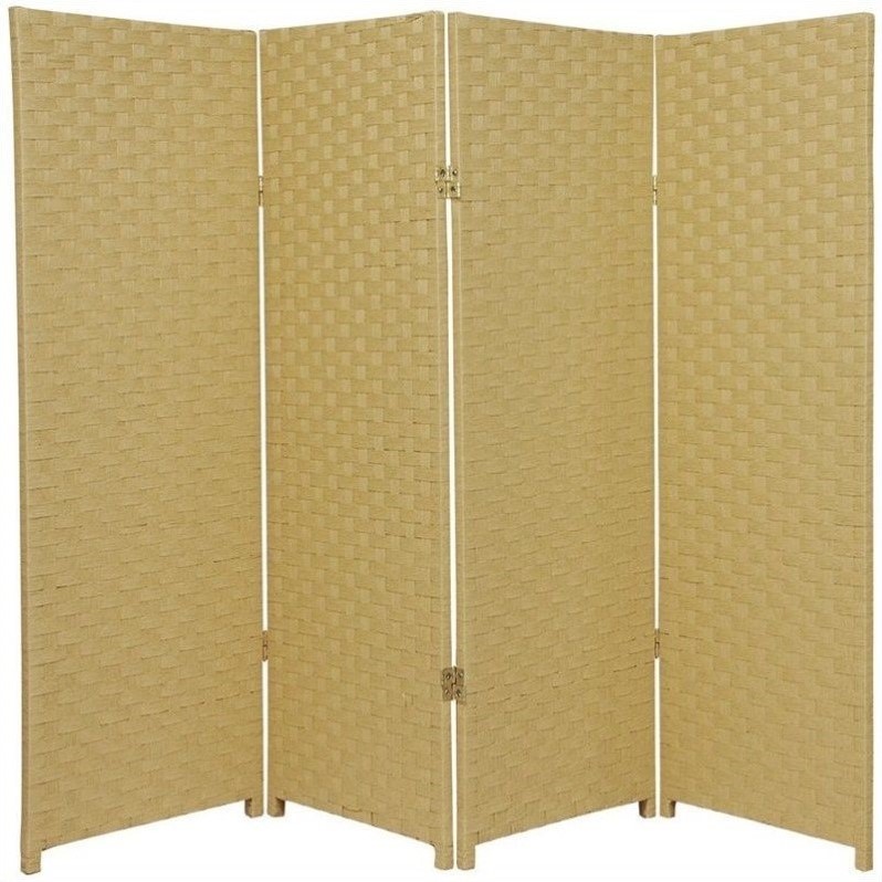 | Oriental Furniture Four Panel Woven Fiber Room Divider in Dark Beige |